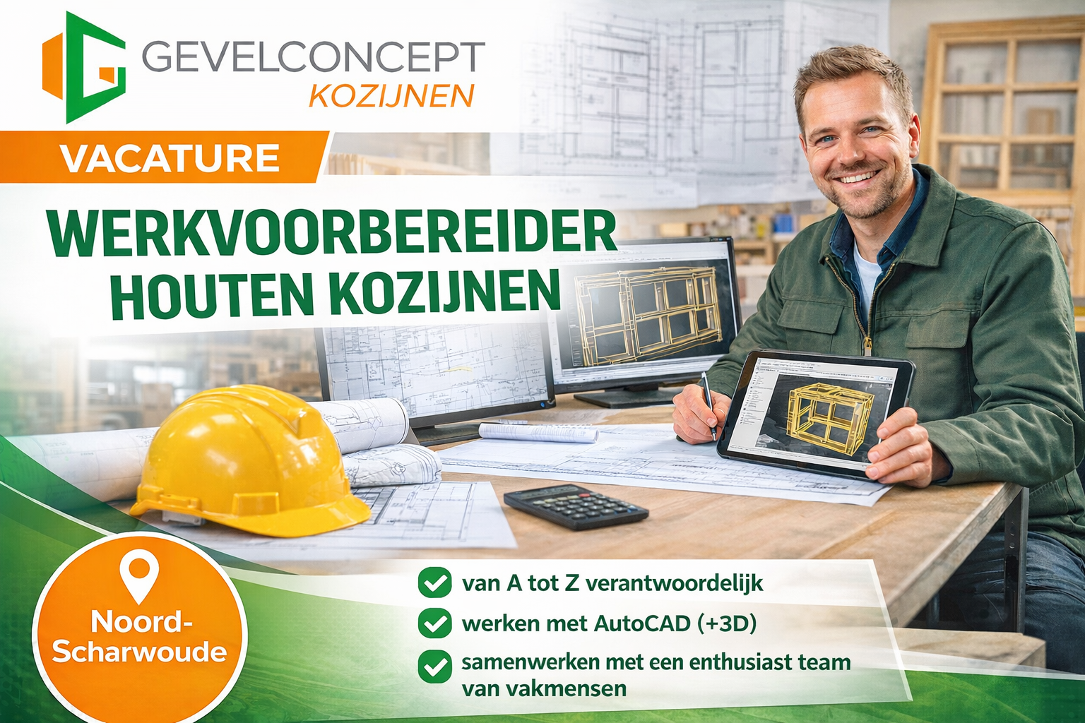 Gevelconcept Kozijnen is een enthousiast en ambitieus maakbedrijf in Noord-Scharwoude met circa 25 medewerkers. Wij zijn gespecialiseerd in het produceren van houten maatwerk kozijnen voor kleine tot middelgrote projecten.